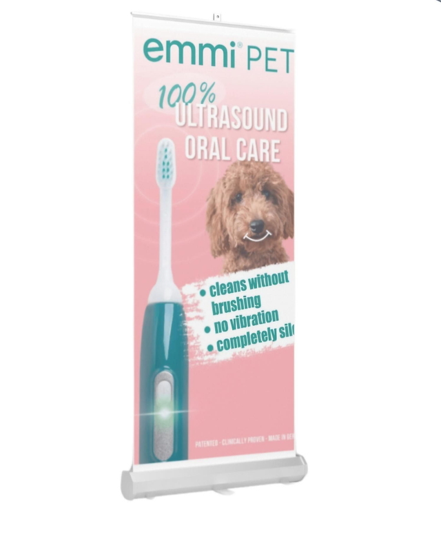 Large Rollup Marketing Banner. emmi-pet with Poodle mix/Pink Design